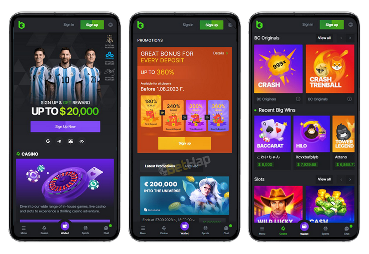 Enjoy a Live Game Shows game on BC.Game app while sitting in your cell. Information on how to install the application is provided on the website with explanations.