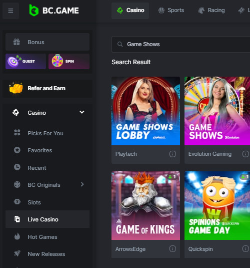 Types of Live Game Shows at BC.Game