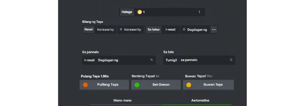 • Pagtugon sa lagging internet at mga problema sa pagdiskonekta . Kung mabagal ang iyong serbisyo sa internet o nawalan ka ng signal, maaari mong gamitin ang function ng auto cash-out. Nagbibigay-daan ito sa user na magtakda ng target na multiplier na susubukang abutin ng system at awtomatikong mag-cash out.