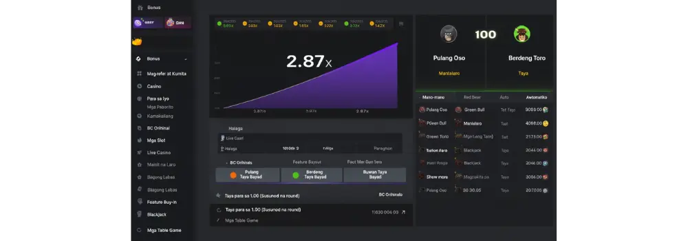 Ang Crash ay isa sa pinakasikat na laro ng BC Originals sa Pilipinas. Sa kabuuan, nag-aalok ang BC.Game ng higit sa 20 laro ng sarili nitong pag-unlad.
